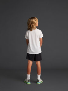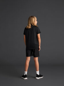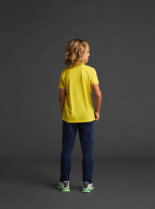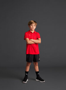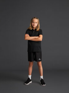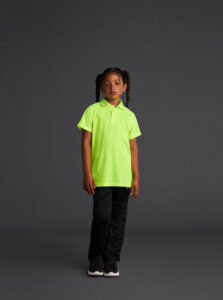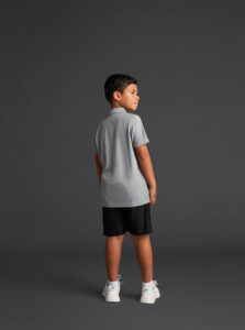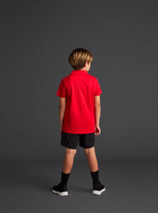 Short-sleeved technical polo shirt for kids in recycled polyester fabric.· Antibacterial