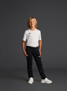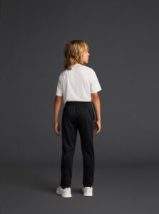 Technical trousers for kids  with regular fit in brushed pique fabric, made of recycled polyester, with elastic waistband and adjustable inner drawstring.