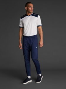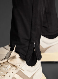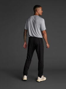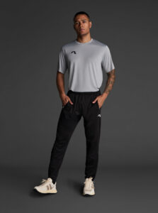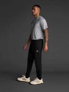 Unisex technical trousers with skinny fit made of micro-perforated recycled polyester, with elastane, elastic waistband and adjustable inner drawstring.
