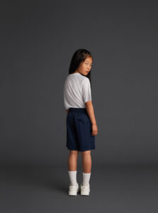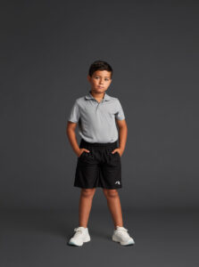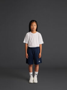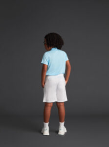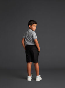Shorts with pockets, for kids, made of recycled polyester fabric with elastic waistband and adjustable inner drawstring.