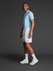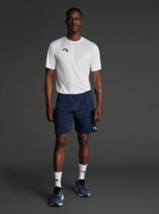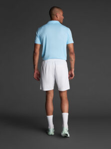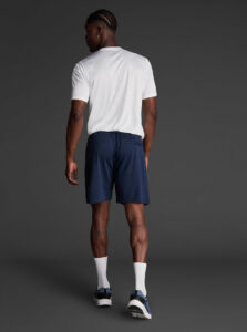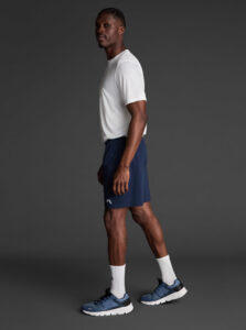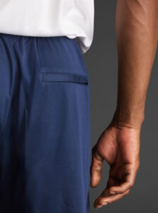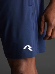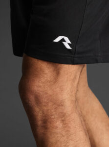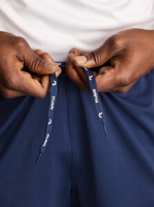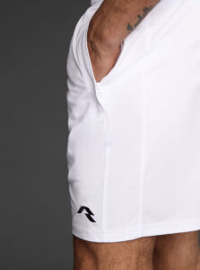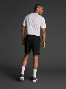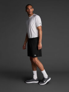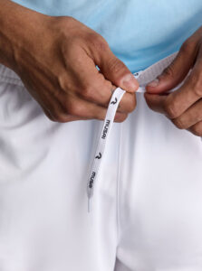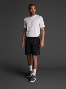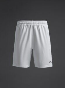Unisex shorts with pockets, made of recycled polyester fabric with elastic waistband and adjustable inner drawstring.