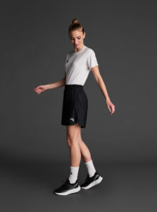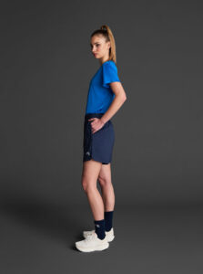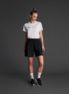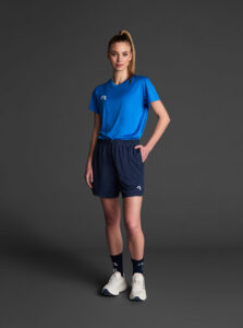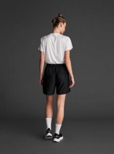 Women's shorts with pockets, made of recycled polyester fabric with elastic waistband and adjustable inner drawstring.