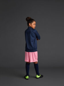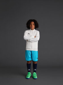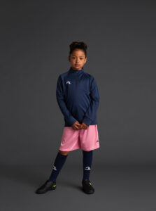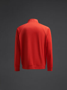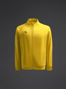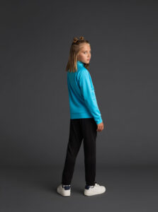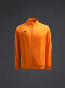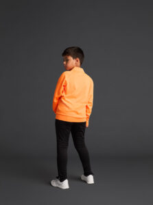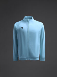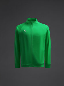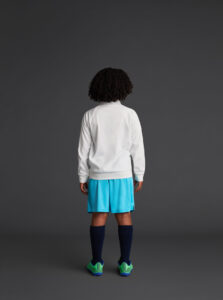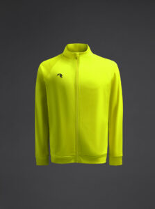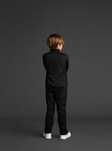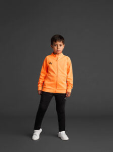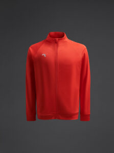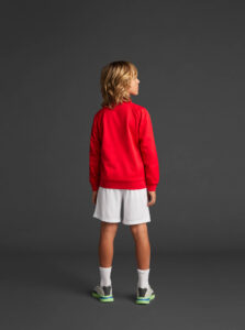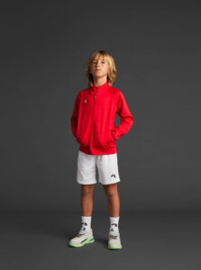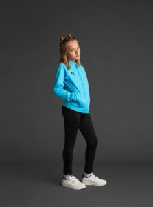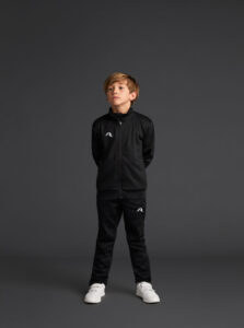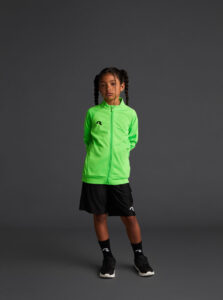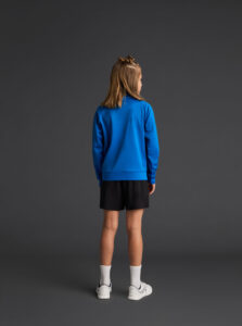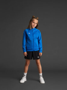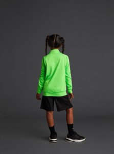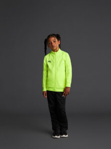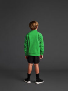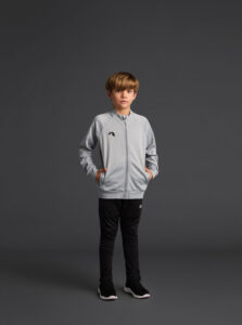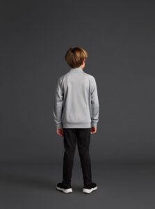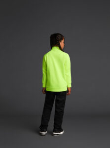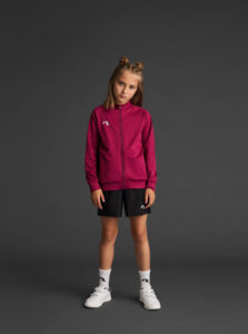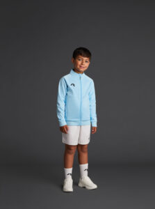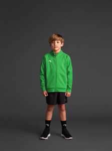 Technical jacket for kids with raglan sleeves and a mid-rise collar, crafted from recycled piqué polyester with a soft brushed lining.