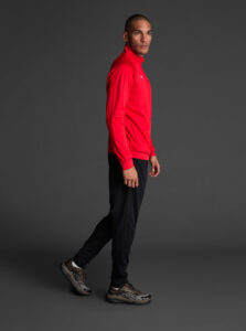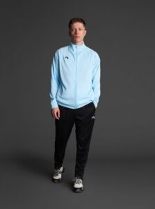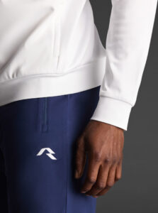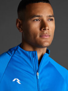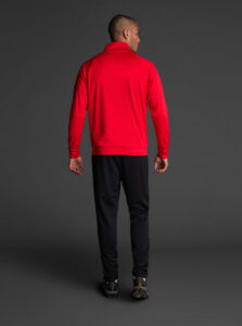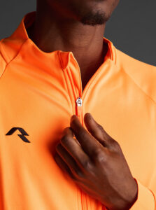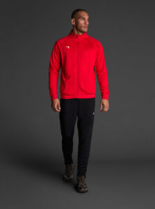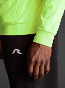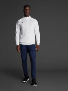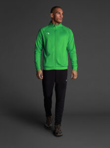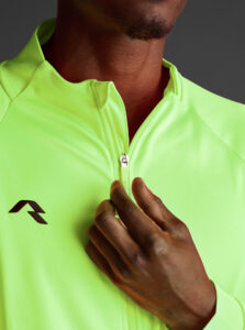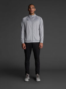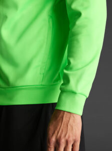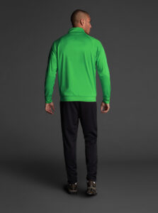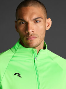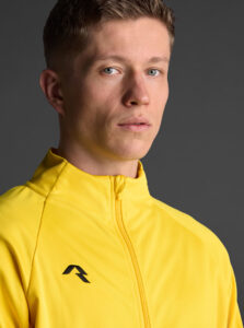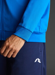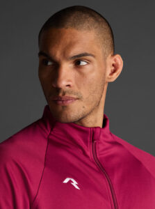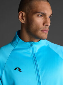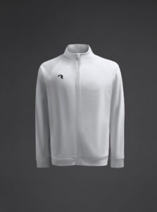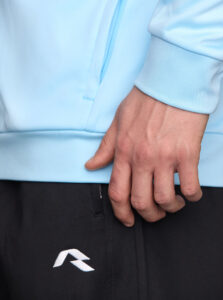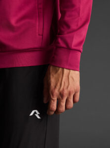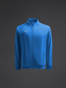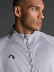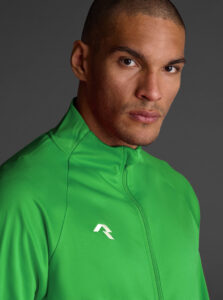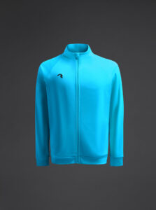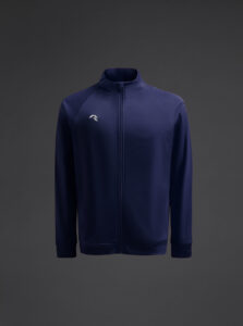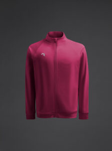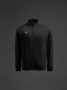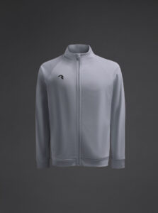 Technical unisex jacket with raglan sleeves and a mid-rise collar, crafted from recycled piqué polyester with a soft brushed lining.