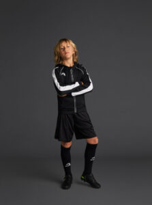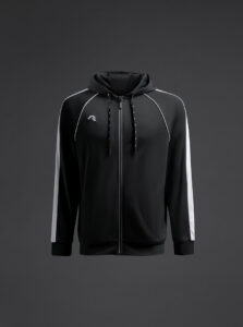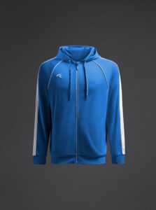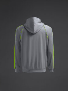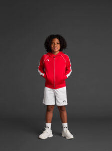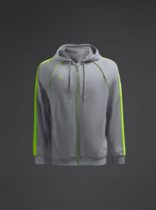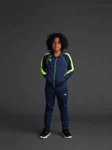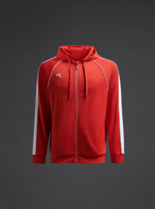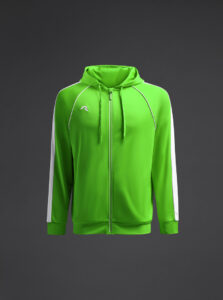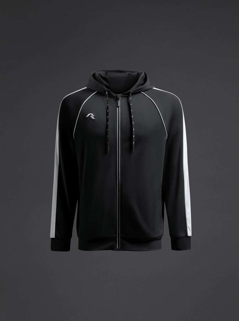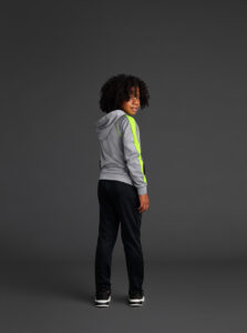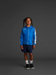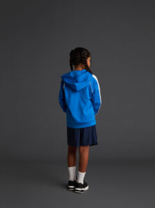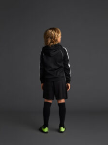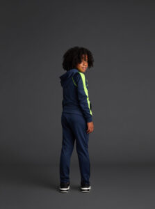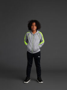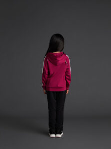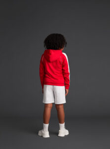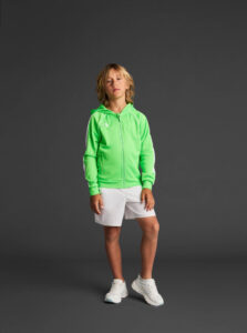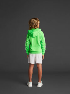 Technical kids' jacket with raglan sleeves and a hood, crafted from recycled piqué polyester with a soft brushed lining.