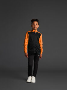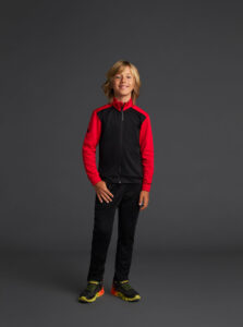 Technical Kids' jacket with a high collar, crafted from recycled piqué polyester with a soft brushed lining.
