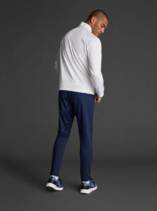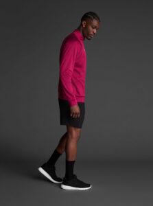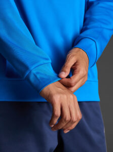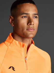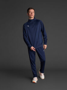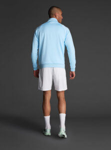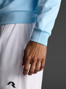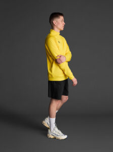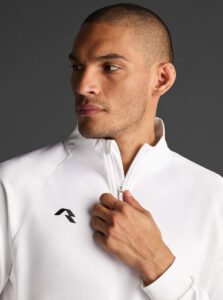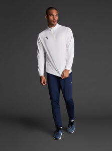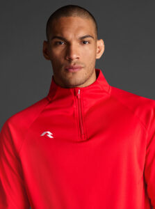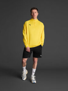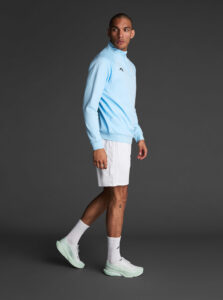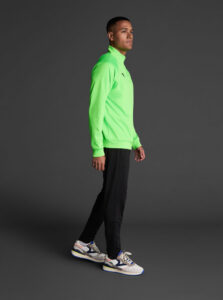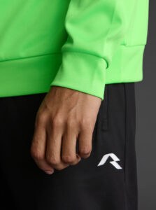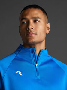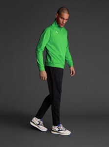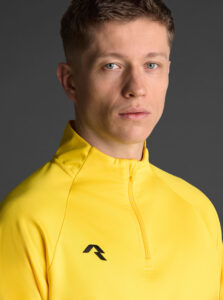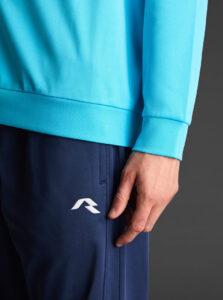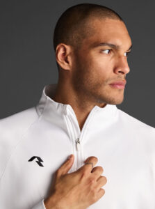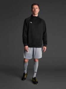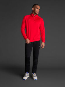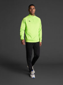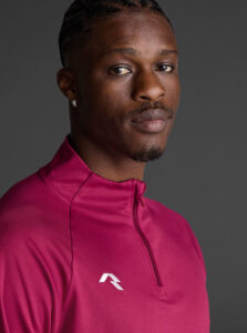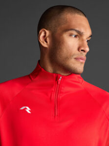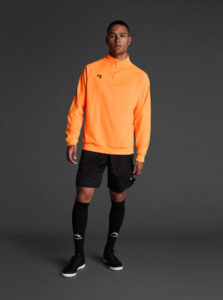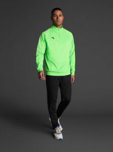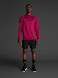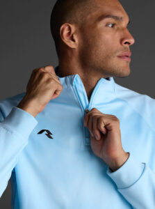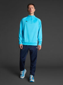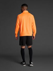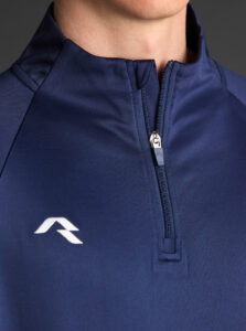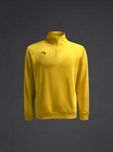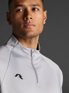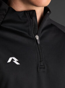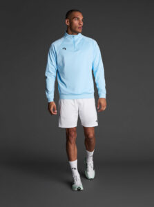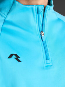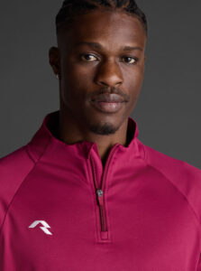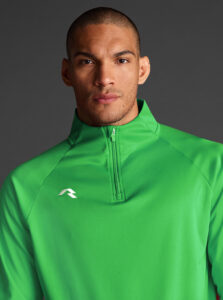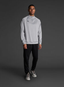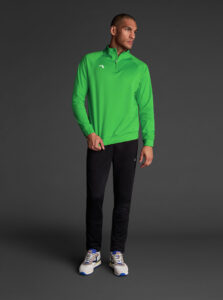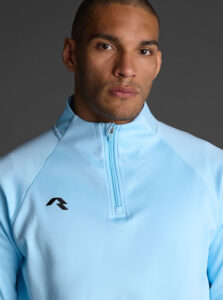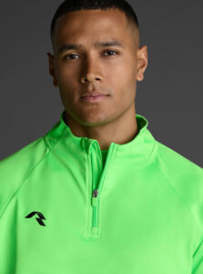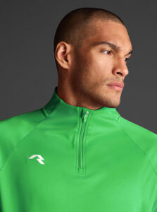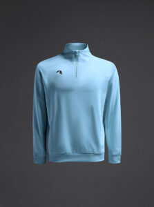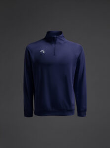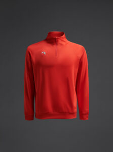 Technical unisex half-zip sweatshirt with raglan sleeves and a mid-rise collar, crafted from recycled piqué polyester with a soft brushed lining.