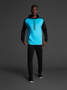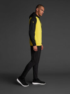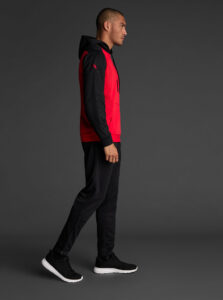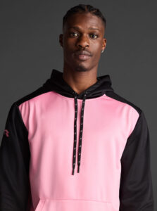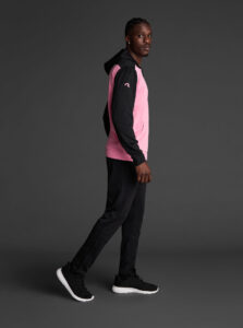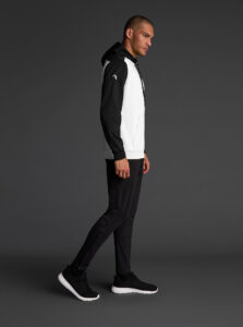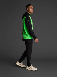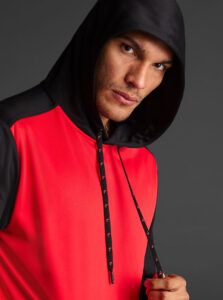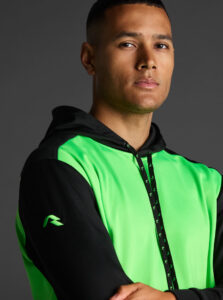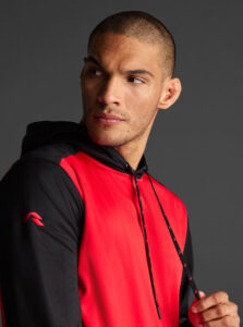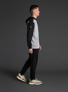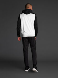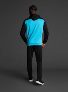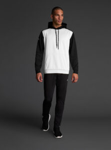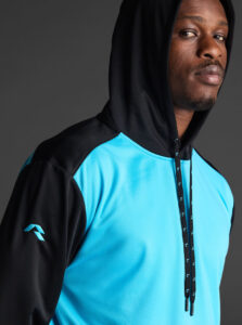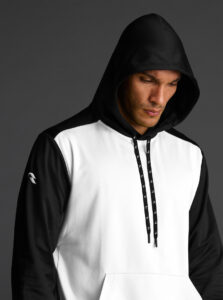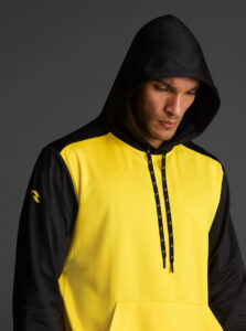 Technical unisex hoodie with a two-tone design, crafted from recycled piqué polyester with a soft brushed lining.