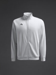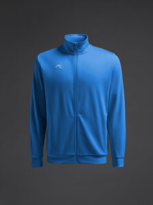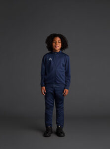 Technical jacket for kids with a high collar, crafted from recycled piqué polyester with a soft brushed lining.