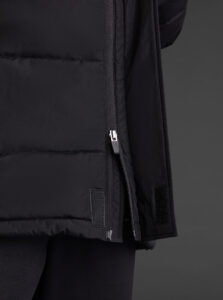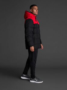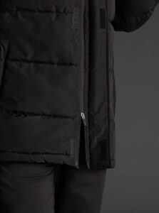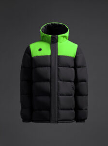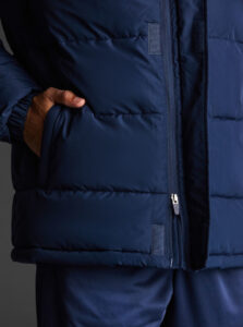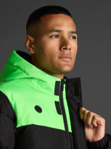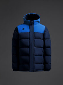 Unisex padded coat combined with fixed hood made of recycled polyester fabric.· Windproof· Padde protection