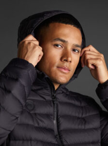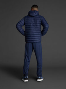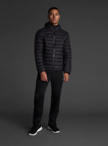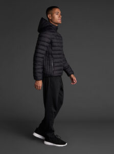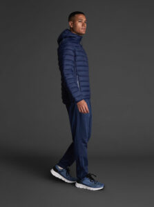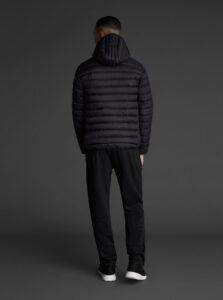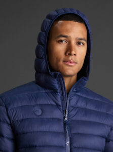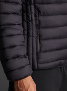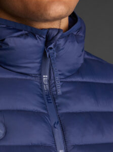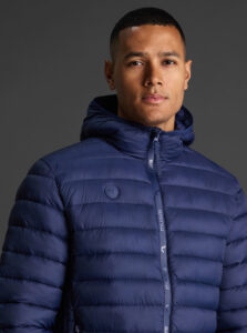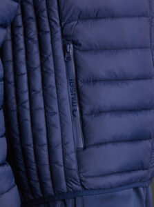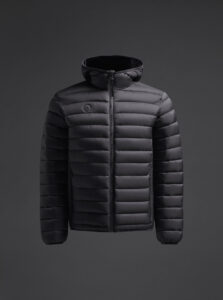 Unisex lightweight padded sports jacket with feather touch padding, with fixed hood, made of recycled polyester and polyamide fabric.· Windproof· Padde protection