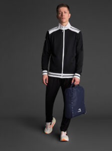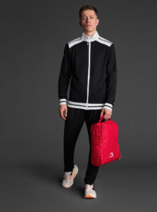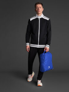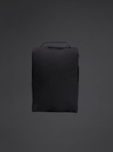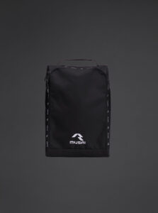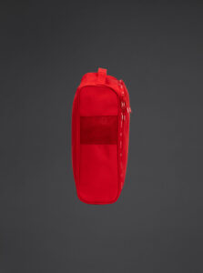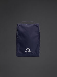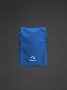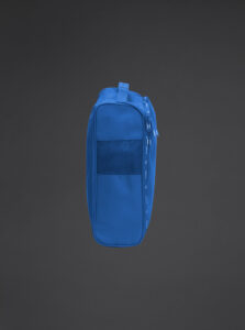 A shoe bag with a compact and functional waterproof fabric for everyday use. Main compartment with zip closure. Top carry handle. Mesh fabric side panels for greater breathability.